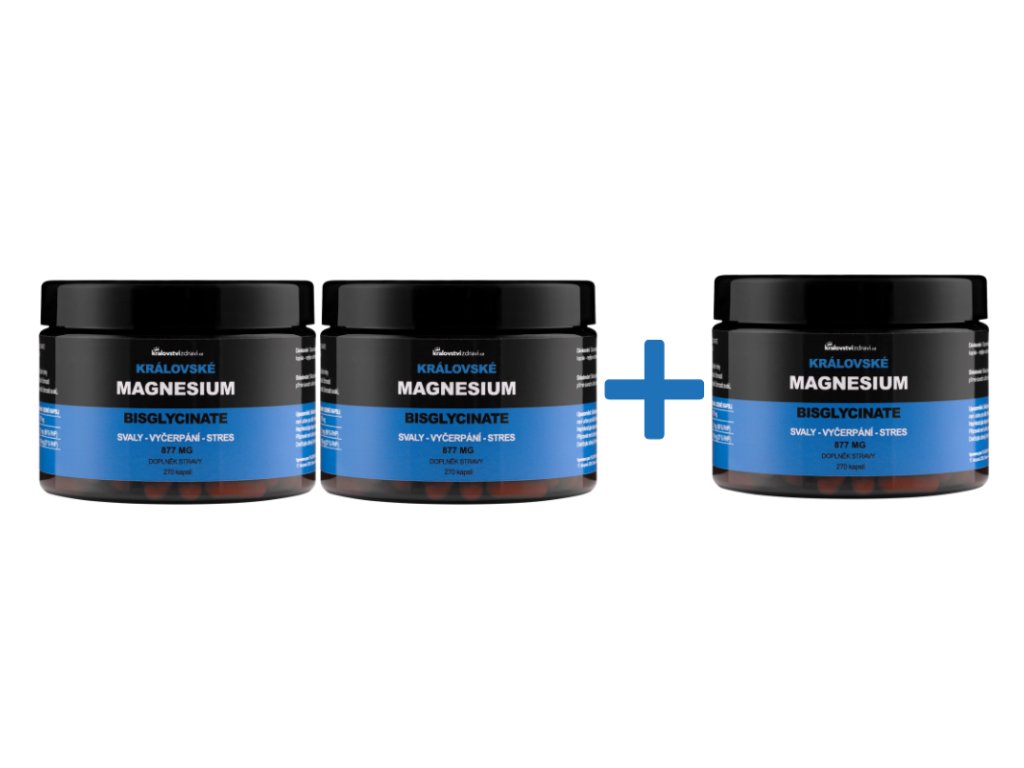 2+1 Kráľovské Magnézium Bisglycinate 877 mg + (vitamín B6), 3x270 veg. kapsúl