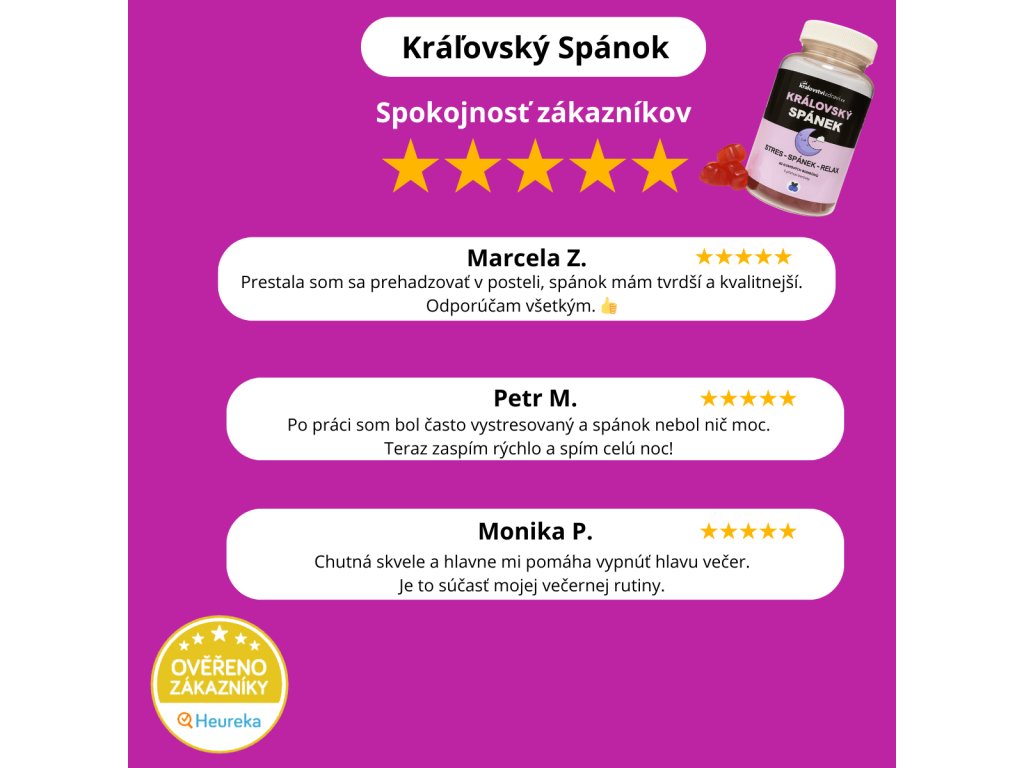 „Predtým som sa prehadzovala pokojne aj hodinu, kým som zaspala. Po pár dňoch s Kráľovským spánkom zaspávam takmer hneď, ako si ľahnem. Cukríky chutia skvele, takže sa na večernú dávku aj teším.“